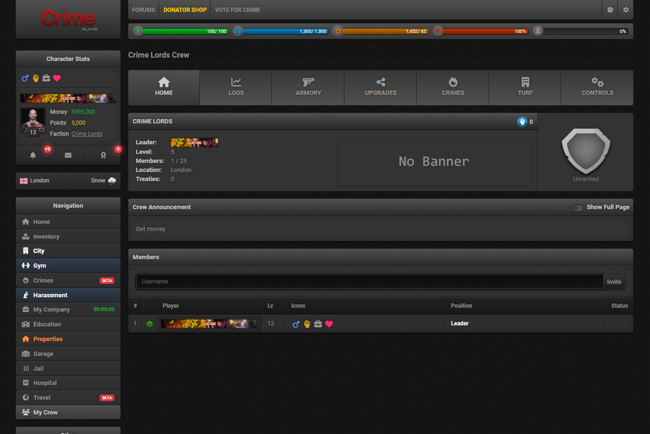 Crime is the latest online game that takes place in the streets.
